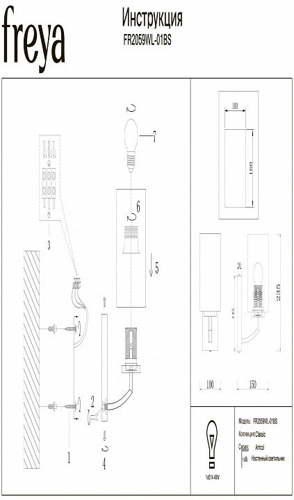 Тип светильника: бра