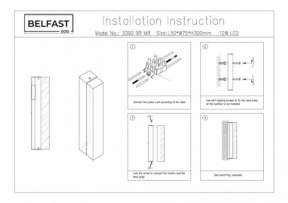 Станьте первым, кто оставит отзыв о товаре Настенный светильник Belfast Ravenhill 3390 BR MB.