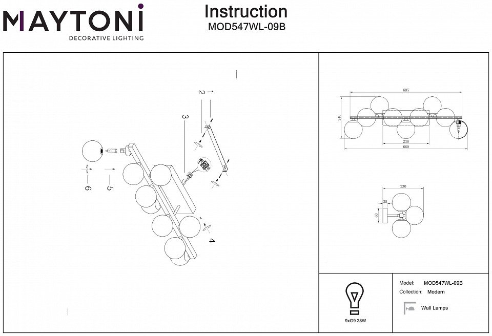 Количество ламп: 9