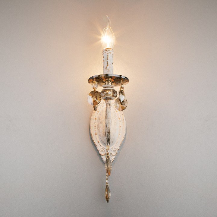 Главная Настенные светильники Бра Eurosvet Ravenna 10104/1 белый с золотом/тонированный хрусталь Strotskis