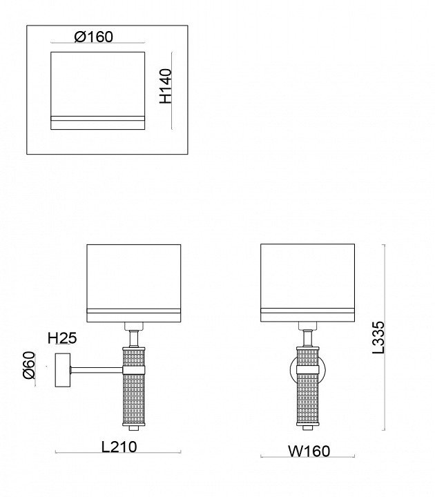 Общая форма для Бра и Настенные светильников с любым количеством рожков: Общий плафон / абажур