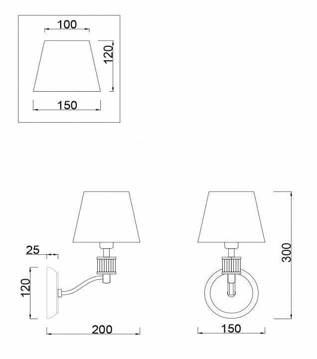 Общая форма для Бра и Настенные светильников с любым количеством рожков: Общий плафон / абажур