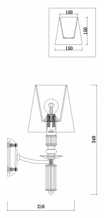 Общая форма для Бра и Настенные светильников с любым количеством рожков: Общий плафон / абажур