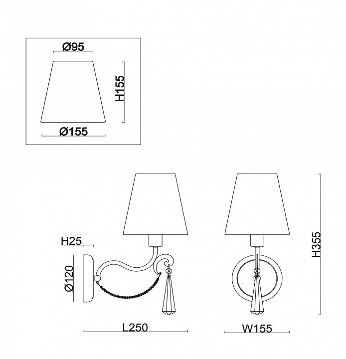 Общая форма для Бра и Настенные светильников с любым количеством рожков: Общий плафон / абажур
