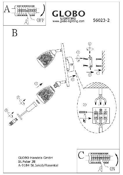 Главная Настенные светильники Настенный светильник Globo Crash 56023-2