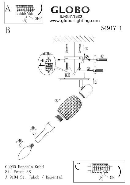 Станьте первым, кто оставит отзыв о товаре Настенный светильник Globo Cyclone 54917-1.
