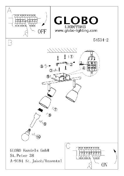 Настенно-потолочный светильник Globo Parry I 54534-2