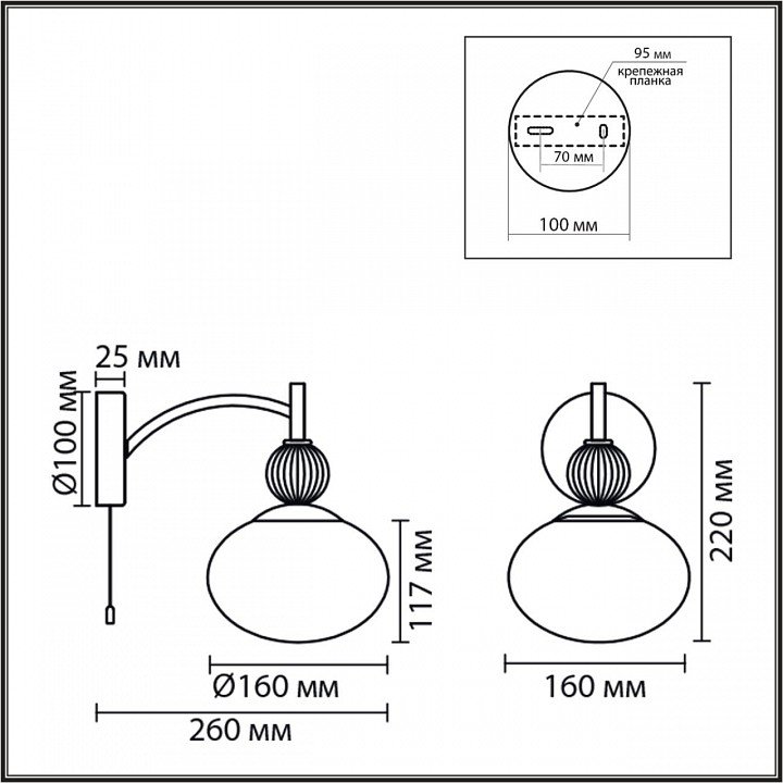 Тип светильника: бра