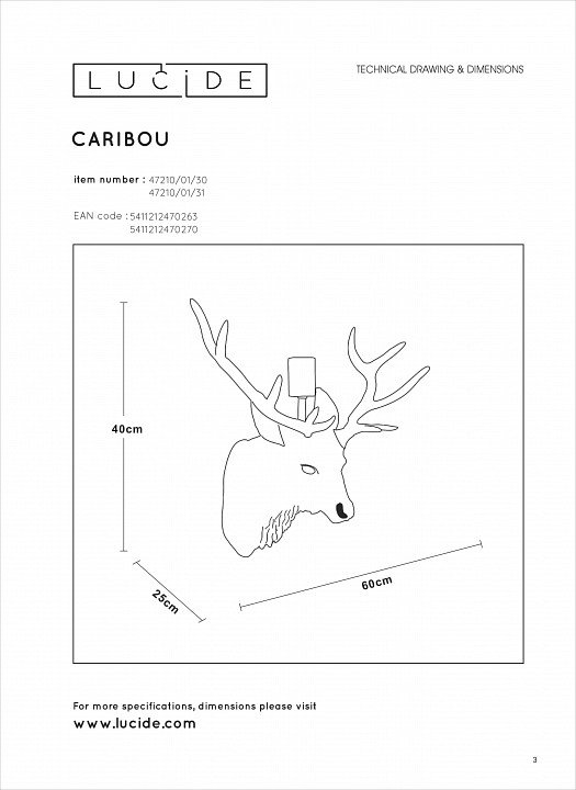 Главная Настенные светильники Бра Lucide Extravaganza Caribou 47210/01/30