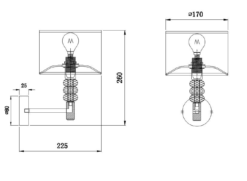 Общая форма для Бра и Настенные светильников с любым количеством рожков: Общий плафон / абажур