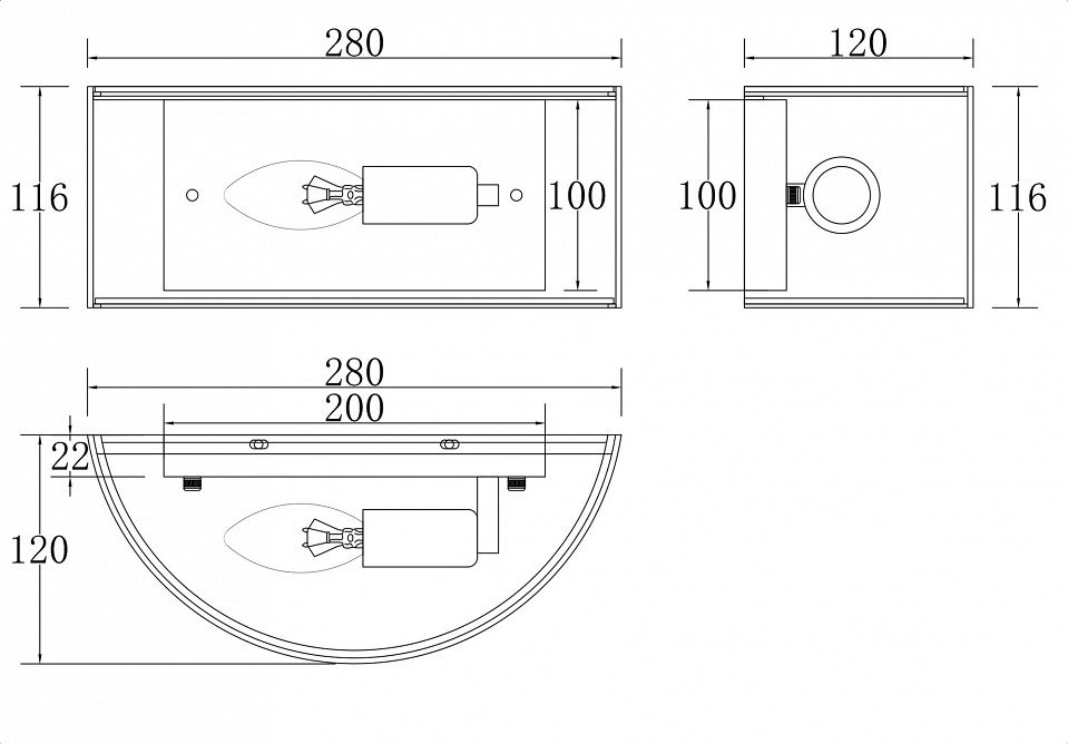 Форма плафона: Полукруг