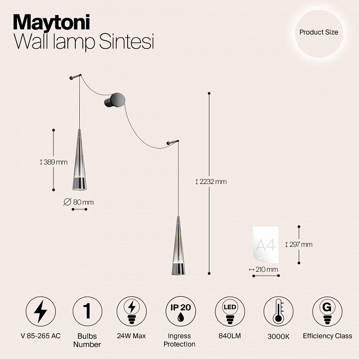 Настенный светильник Maytoni Sintesi P090WL-L24CH3K