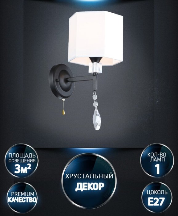 Станьте первым, кто оставит отзыв о товаре Бра Wedo Light Mildret WD3611/1W-BK-WT.