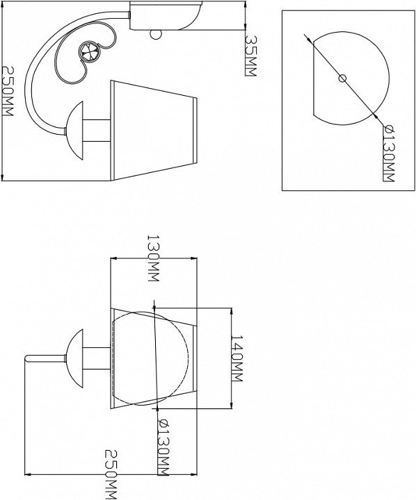 Общая форма для Бра и Настенные светильников с любым количеством рожков: Общий плафон / абажур