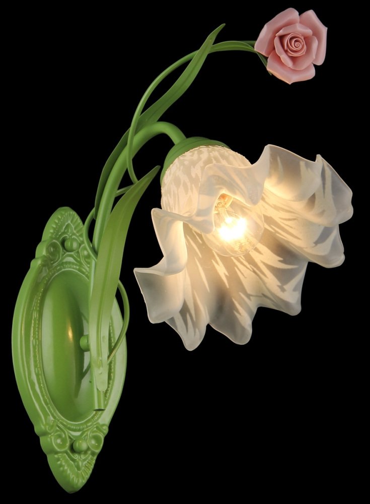 Станьте первым, кто оставит отзыв о товаре !! Небольшой брак!! Настенный светильник в виде цветка розы Natali Kovaltseva Rose 11462/1W Green.