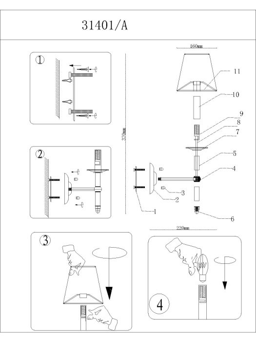 Общая форма для Бра и Настенные светильников с любым количеством рожков: Общий плафон / абажур