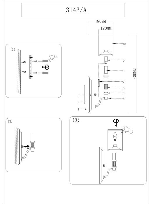 Общая форма для Бра и Настенные светильников с любым количеством рожков: Общий плафон / абажур