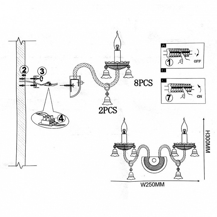 Общая форма для Бра и Настенные светильников с любым количеством рожков: Без плафонов / свечи