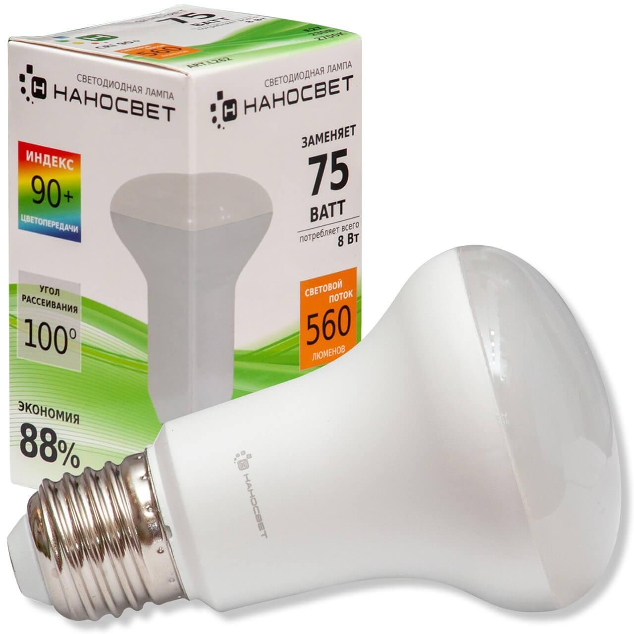 Станьте первым, кто оставит отзыв о товаре Лампа светодиодная рефлекторная Наносвет E27 8W 2700K матовая LE-R63-8/E27/827 L262.