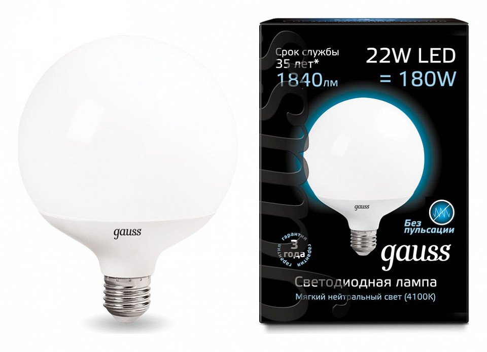 Станьте первым, кто оставит отзыв о товаре Лампа светодиодная Gauss E27 22W 4100K матовая 105102222.