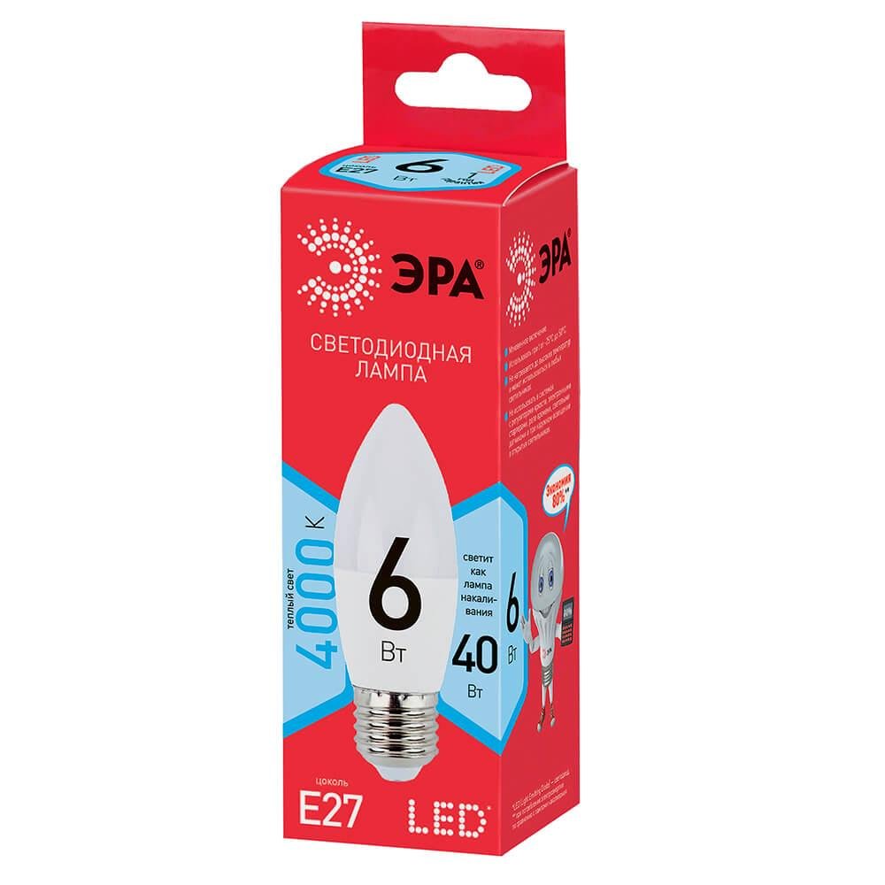 Главная Лампочки Лампа светодиодная ЭРА E27 6W 4000K матовая ECO LED B35-6W-840-E27