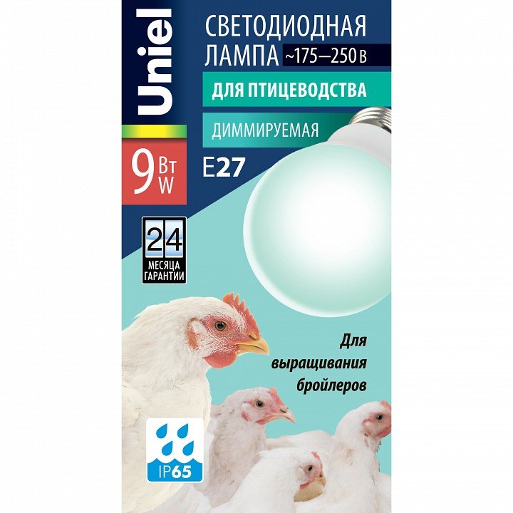 Станьте первым, кто оставит отзыв о товаре Лампа светодиодная Uniel диммируемая для бройлеров E27 9W LED-A60-9W/SCBG/E27/FR/DIM IP65 PLO65WH.