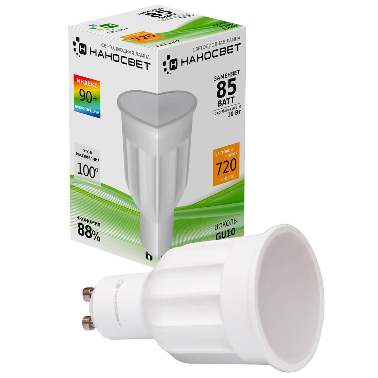 Лампа светодиодная Наносвет GU10 10W 2700K матовая LE-MR16A-10/GU10/927 L272