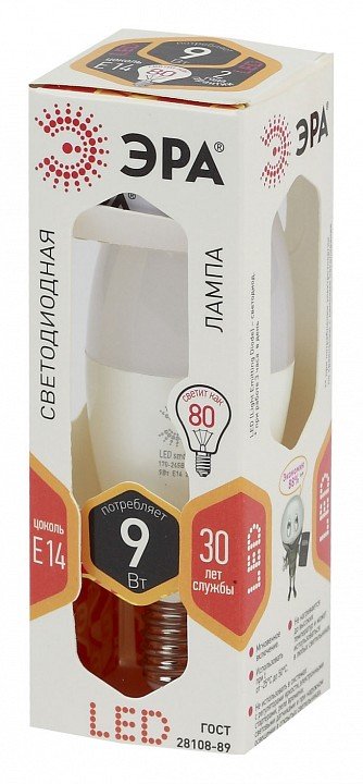 Главная Лампочки Лампа светодиодная ЭРА E14 9W 2700K матовая B35-9W-827-E14