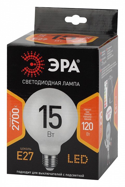 Станьте первым, кто оставит отзыв о товаре Лампа светодиодная филаментная ЭРА E27 15W 2700K опал F-LED G125-15w-827-E27 opal Б0047038.