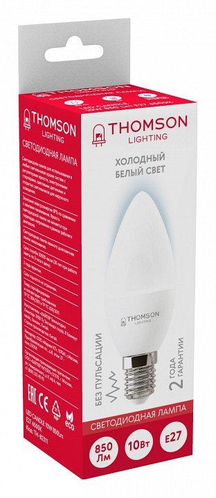 Станьте первым, кто оставит отзыв о товаре Лампа светодиодная Thomson E27 10W 6500K свеча матовая TH-B2311.
