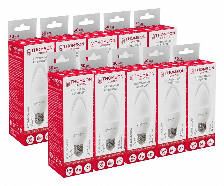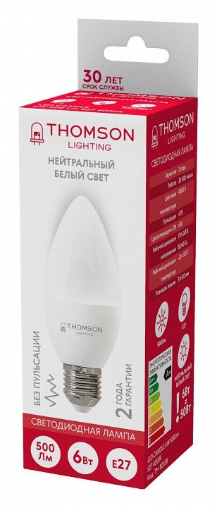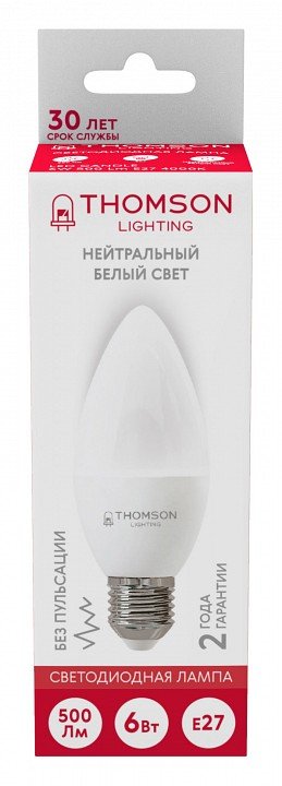 Станьте первым, кто оставит отзыв о товаре Лампа светодиодная Thomson E27 6W 4000K свеча матовая TH-B2358.