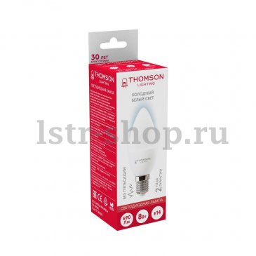 Главная Лампочки Лампа светодиодная Thomson E27 6W 4000K свеча матовая TH-B2358