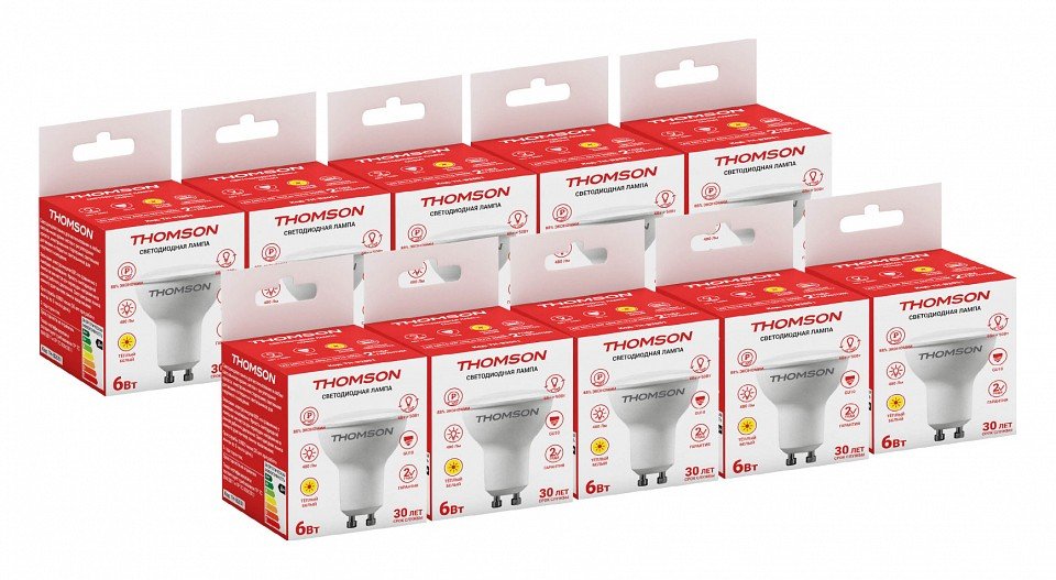 Станьте первым, кто оставит отзыв о товаре Лампа светодиодная Thomson GU10 6W 3000K полусфера матовая TH-B2051.