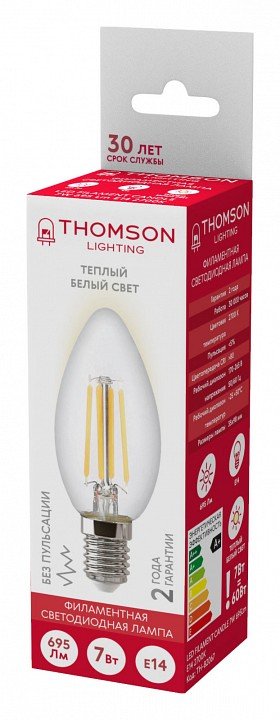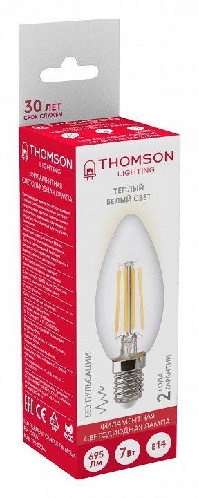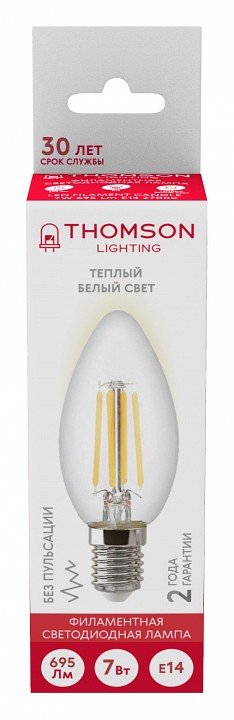 Станьте первым, кто оставит отзыв о товаре Лампа светодиодная филаментная Thomson E14 7W 2700K свеча прозрачная TH-B2067.