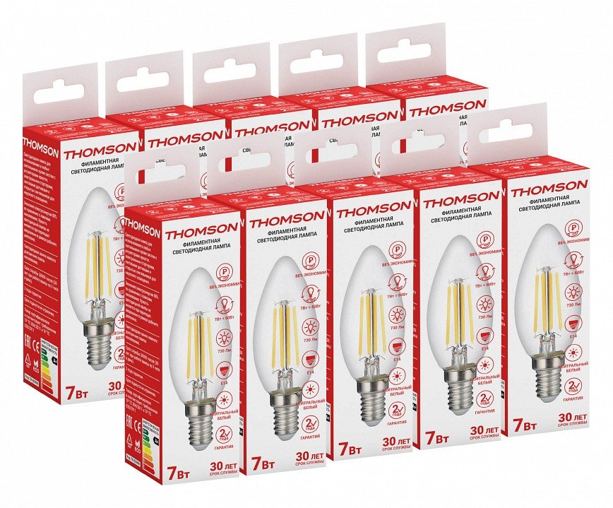 Станьте первым, кто оставит отзыв о товаре Лампа светодиодная филаментная Thomson E14 7W 4500K свеча прозрачная TH-B2068.