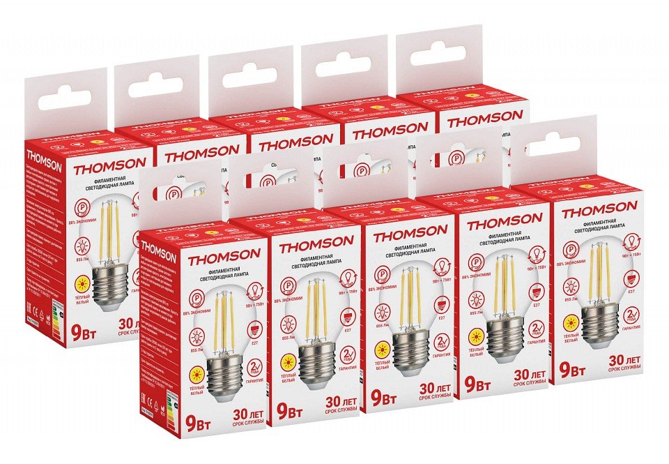 Станьте первым, кто оставит отзыв о товаре Лампа светодиодная филаментная Thomson E27 9W 2700K шар прозрачная TH-B2093.