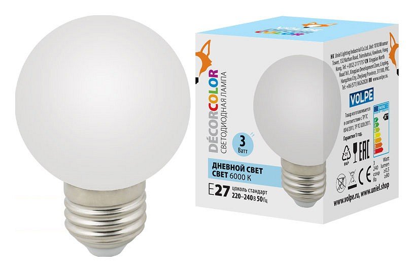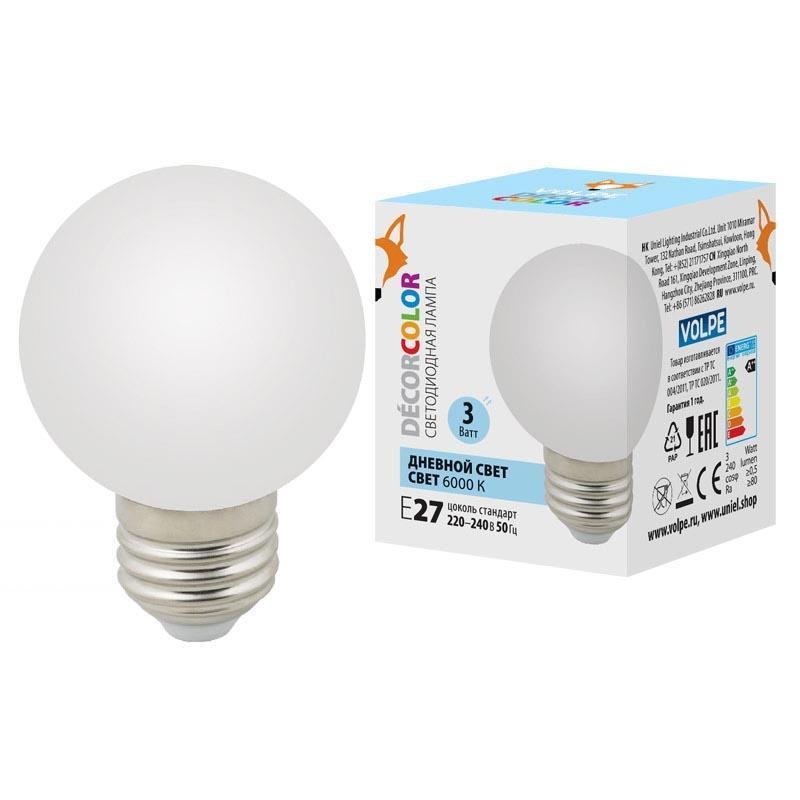 Главная Лампочки Лампа светодиодная (UL-00006956) Volpe E27 3W 6000K матовая LED-G60-3W/6000K/E27/FR/С