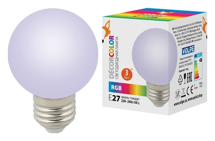 Главная Лампочки Лампа светодиодная (UL-00006960) Volpe E27 3W разноцветная LED-G60-3W/RGB/E27/FR/С