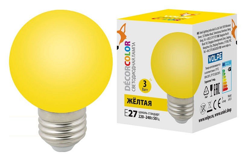 Главная Лампочки Лампа светодиодная (UL-00006961) Volpe E27 3W желтая LED-G60-3W/Yellow/E27/FR/С