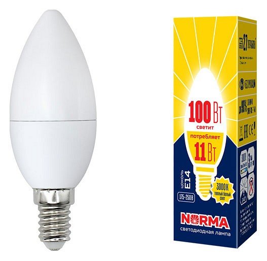 Главная Лампочки Лампочка светодиодная Volpe LED-C37-11W/WW/E14/FR/NR картон