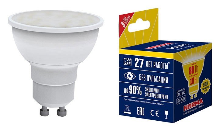 Артикул: LED-JCDR-10W/WW/GU10/NR картон