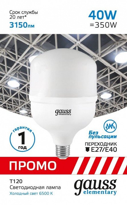Станьте первым, кто оставит отзыв о товаре Лампа светодиодная Gauss E40 40W 6500K матовая 60434.