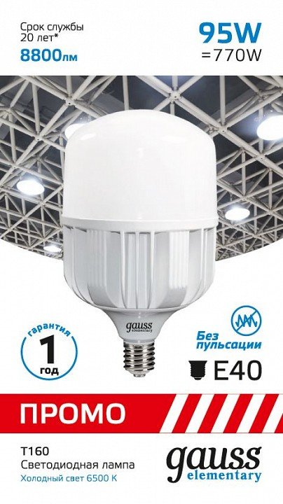 Станьте первым, кто оставит отзыв о товаре Лампа светодиодная Gauss E40 95W 6500K матовая 60430.