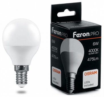 Главная Лампочки Лампа светодиодная Feron E27 6W 4000K Матовая LB-1406 38069
