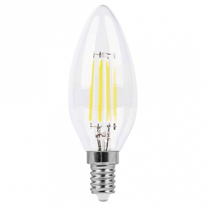 Главная Лампочки Лампа светодиодная филаментная Feron E14 7W 4000K Свеча Прозрачная LB-66 25780