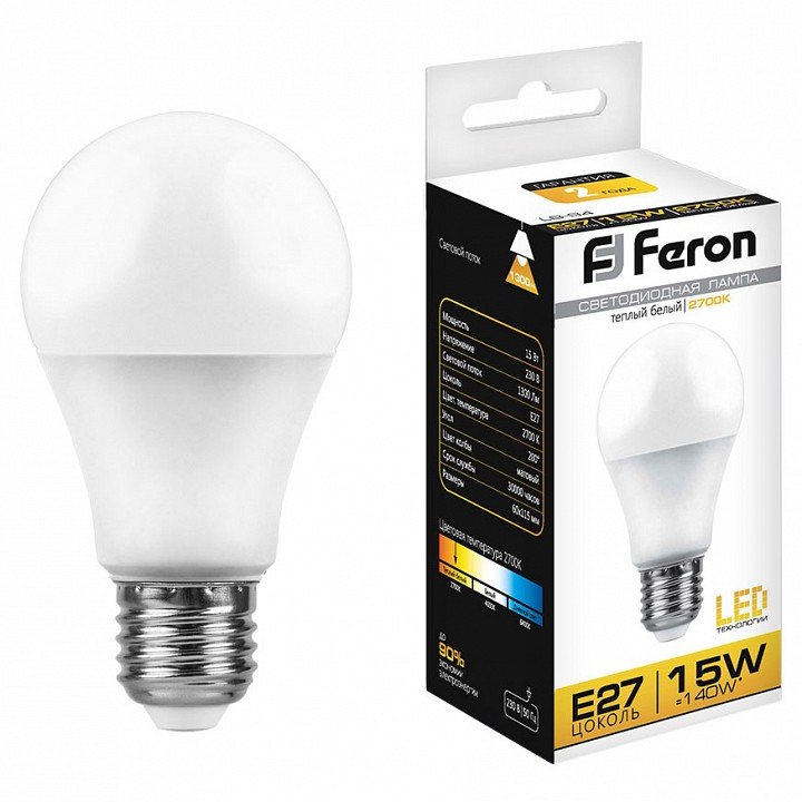 Главная Лампочки Лампа светодиодная Feron LB-94 E27 15Вт 2700K 25528