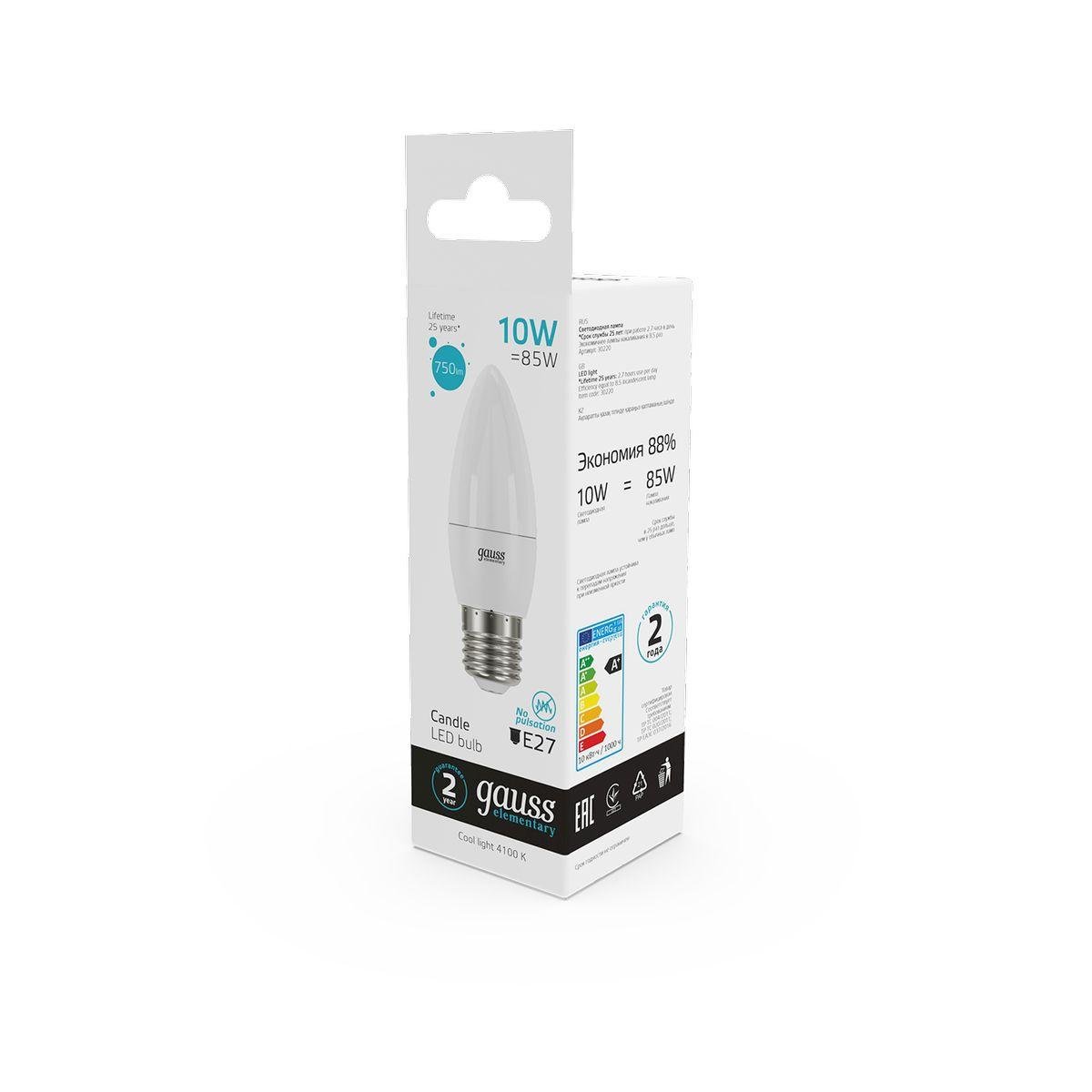 Лампа светодиодная Gauss E27 10W 4100K матовая 30220