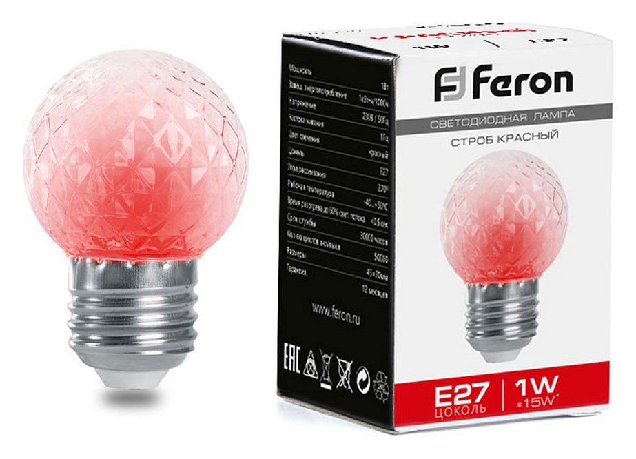 Станьте первым, кто оставит отзыв о товаре Лампа-строб светодиодная Feron E27 1W красный прозрачная LB-377 38210.