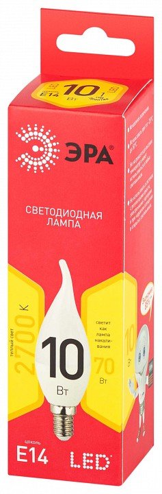 Лампа светодиодная ЭРА E14 10W 2700K матовая LED BXS-10W-827-E14 R Б0051854