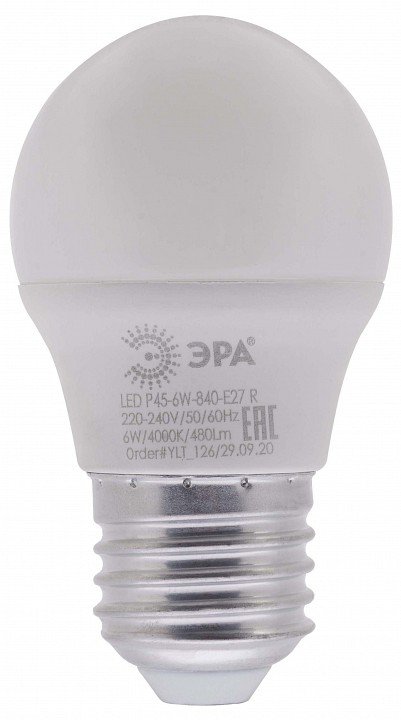 Лампа светодиодная ЭРА E27 6W 4000K матовая LED P45-6W-840-E27 R Б0049644